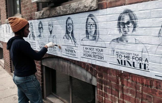 This example illustrates how the creative actions of modern feminist activists span technologically “augmented” hybrid spaces and open up new avenues for cross-border political engagement. Social media not only makes an issue visible, but also results in real feelings of connectedness and closeness to others . One such example is ‘Anti-Street Harassment Week’, a global online solidarity campaign aiming to tackle street harassment. As part of this campaign, activists around the world went out into the streets and wheat-pasted anti-street harassment art while simultaneously photographing and sharing their actions online using the hashtag #EndSHWeek.