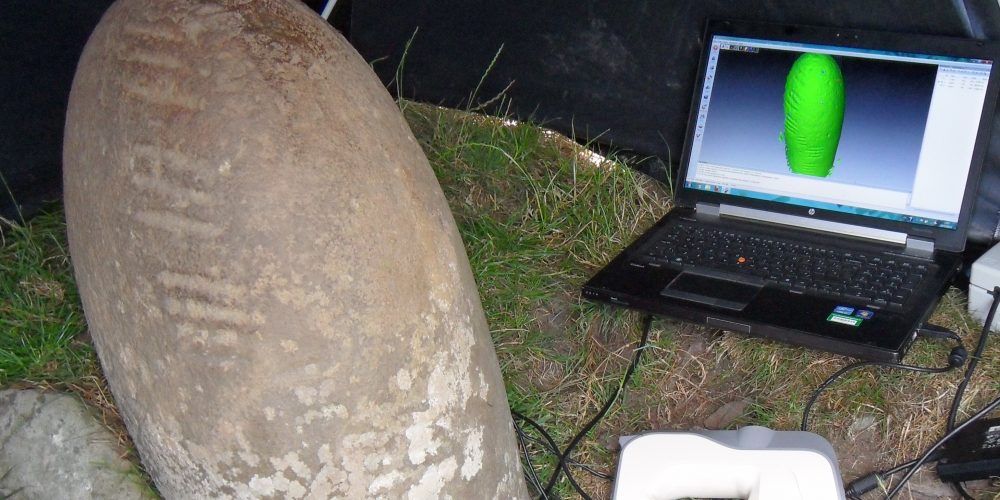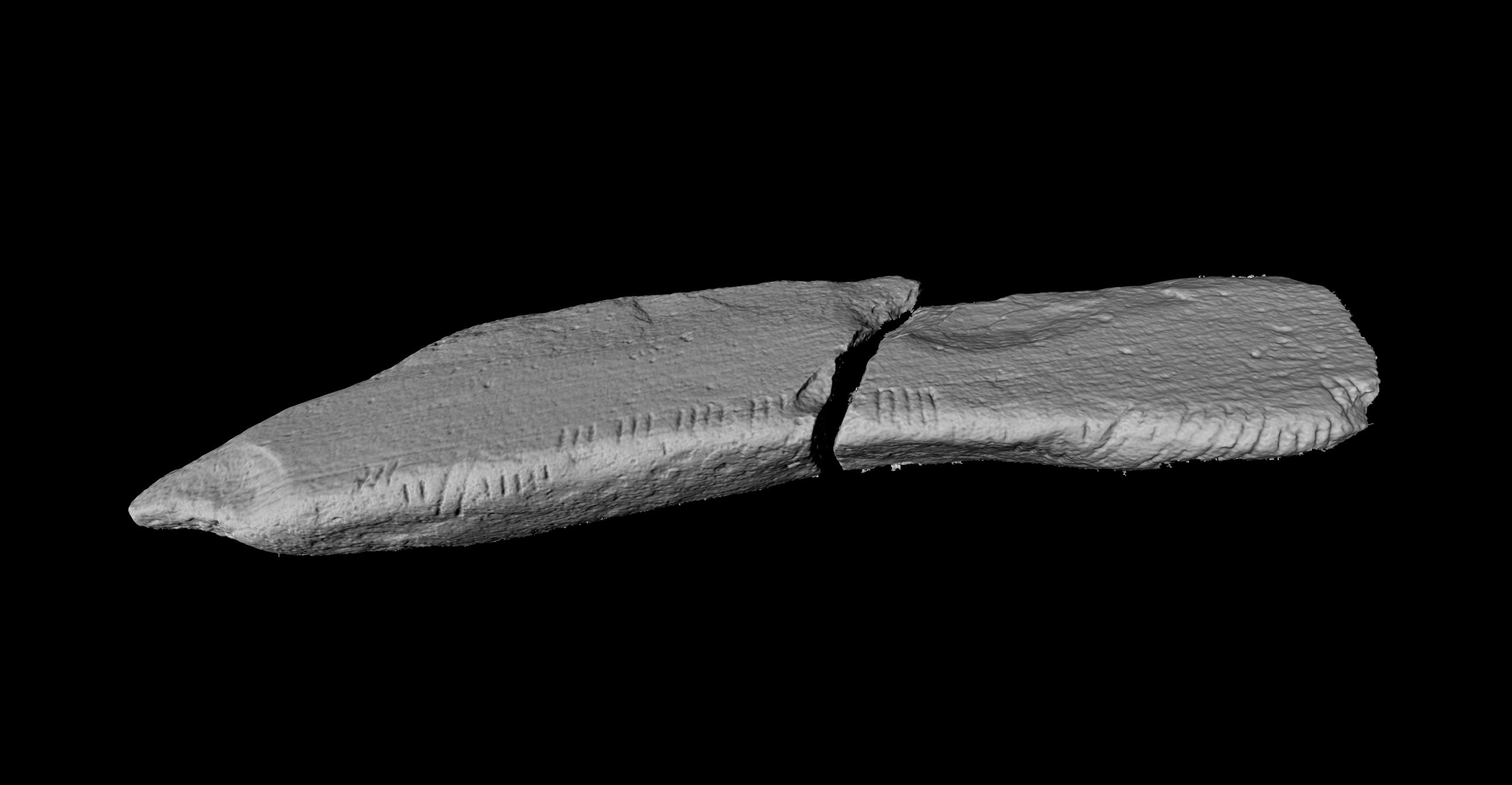 3d model (Discovery Programme) of an ogham stone from Ballywiheen (Baile an Bhoithín), Dingle Peninsula.