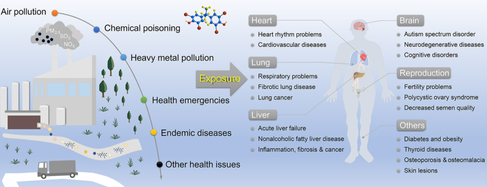 Human and animal health rely on each other and the environment. The effects on the environment, whether good or bad, directly affect organisms at all levels, including humans. Hence, various fields in human health, animal health, and the environment need to collaborate and cooperate to improve public health sustainability. Nowadays, pharmaceuticals of antibiotics, non-steroidal anti-inflammatory drugs, endocrine-disrupting compounds, and many others are being released into the environment continuously across the globe without proper treatment. Gastrointestinal bleeding, ulcers, strokes, heart attacks, reproductive disorders, feminization in both human and aquatic organisms are related to pharmaceutical waste products in the environment. They are also the main causes of an increasing level of antibiotic resistance, which is a global challenge. The World Health Organization estimated that antibiotic resistance directly caused 1.27 million deaths in 2019, and it is projected to cause 10 million deaths by 2050 if no measurable interventions have been undertaken. Meanwhile, industrial toxins of heavy metals and organic compounds have severe public health effects including organ damage, weakened immunity, allergies, birth defects, impaired child development, and cancer. Hence, implementation of a comprehensive, collaborative, and One Health strategy is compulsory to counteract the health effects of these chemical contaminants.