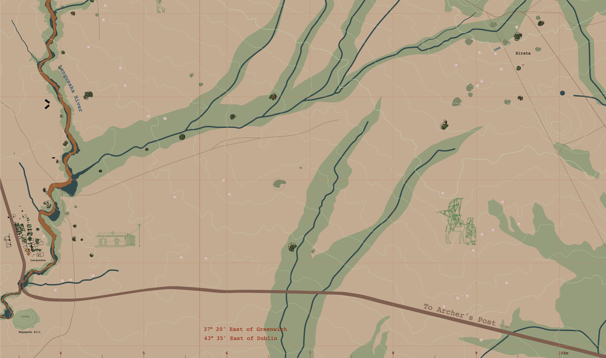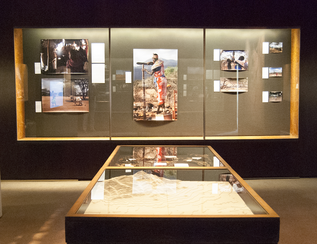 Overall, the exhibition demonstrates the extraordinary commitment of students and educators in the collaborative. Curated by Architecture students from UCD, the show has four main sections: house-building, migration, gender and climate change. In all of these, the Samburu house remains a focal point, a conduit for elucidating larger topics in Samburu and beyond. For example, the section on migration discusses the long history of transhumance in the region as well as new modes of migration brought on by climate change and globalization. We also made space, literally and figuratively, for experimental work. One student, Silvia Doherty, completed a Master of Architecture dissertation that traced how the Samburu region has been mapped since the early 20th century. In historical maps, the dwellings and traditional communities of Samburu people are conspicuous by their absence. As a rebuttal to this, Silvia and two other students, Aakriti Sood and Peter Whelan, created a new monumental map that illustrates and communicates how the Samburu inhabit the landscape.