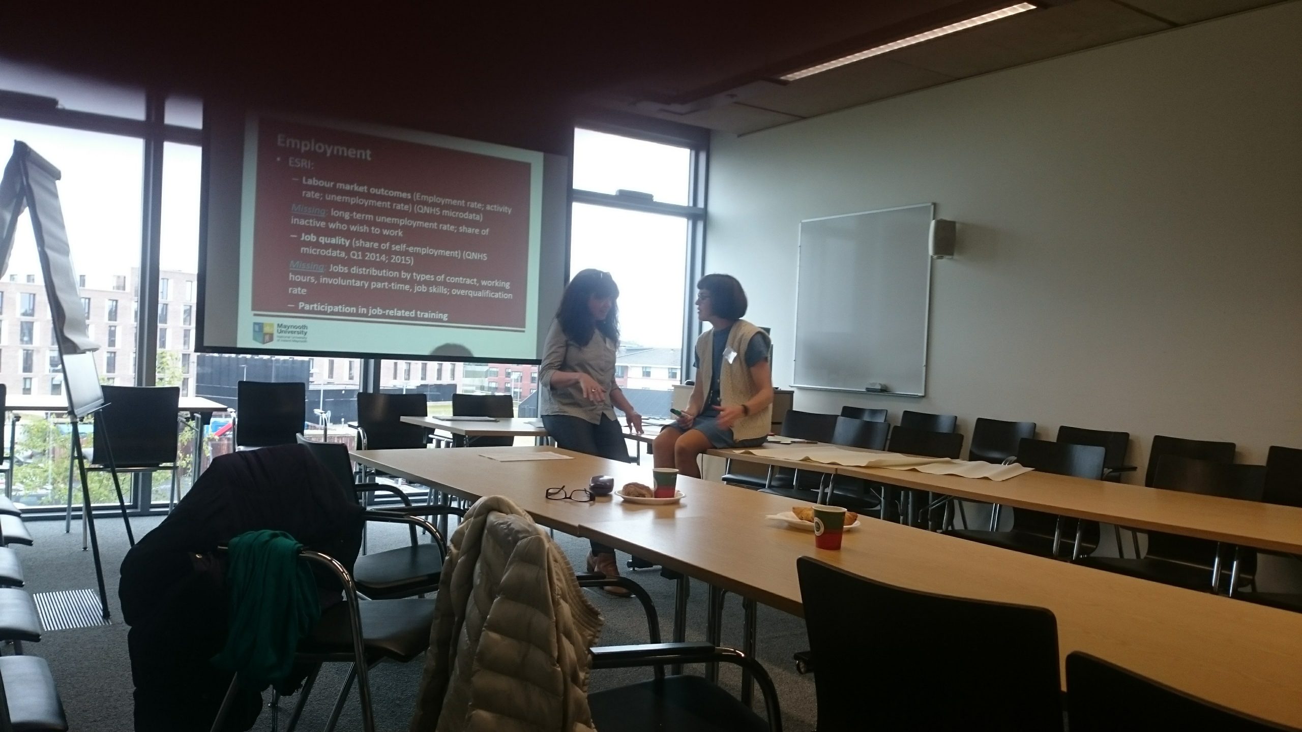 Mary Gilmartin (L) and Jenny Dagg (R) at a workshop on integration outcomes held at Maynooth University Social Sciences Institute, June 2017