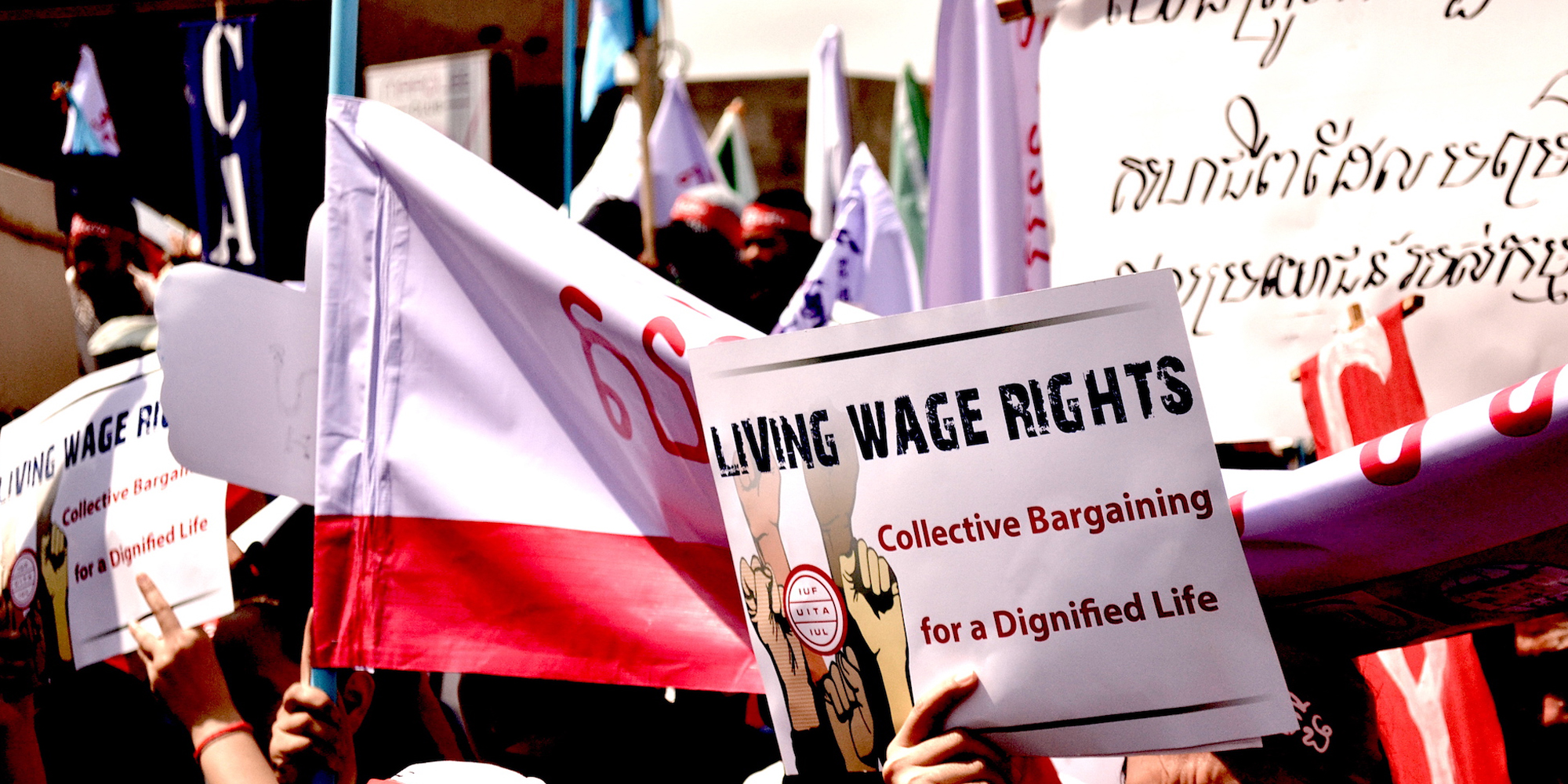 David Cichon, Irish Research Council Scholar, ‘Garment workers in Phnom Penh marching for a living wage and collective bargaining rights on International Labour Day 2017’.