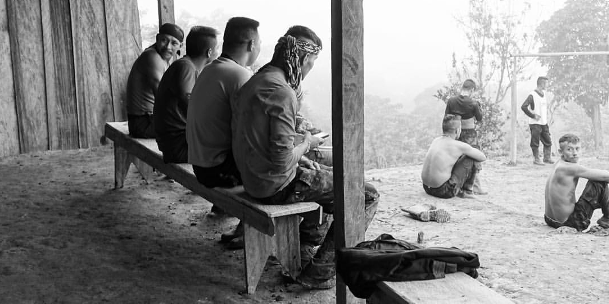 Chiara Mizzoni, Andrew Grene Postgraduate Scholar in Conflict Resolution, ‘A group of FARC fighters watch a game of afternoon football at a demobilisation and transition camp in Icononzo, Colombia’.